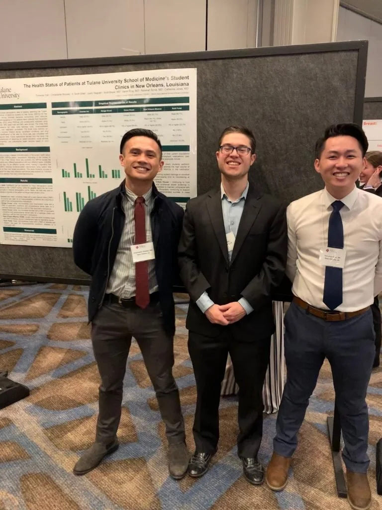 Tran, T., Briones, C., Gillet, A.S., Magrath, J., Mayer, S (MD). Brug, A (MD)., Byrne, R (MD)., & Jones, C (MD). The Health Status of Patients at Tulane University School of Medicine’s Student Clinics in New Orleans, Louisiana. (2019).