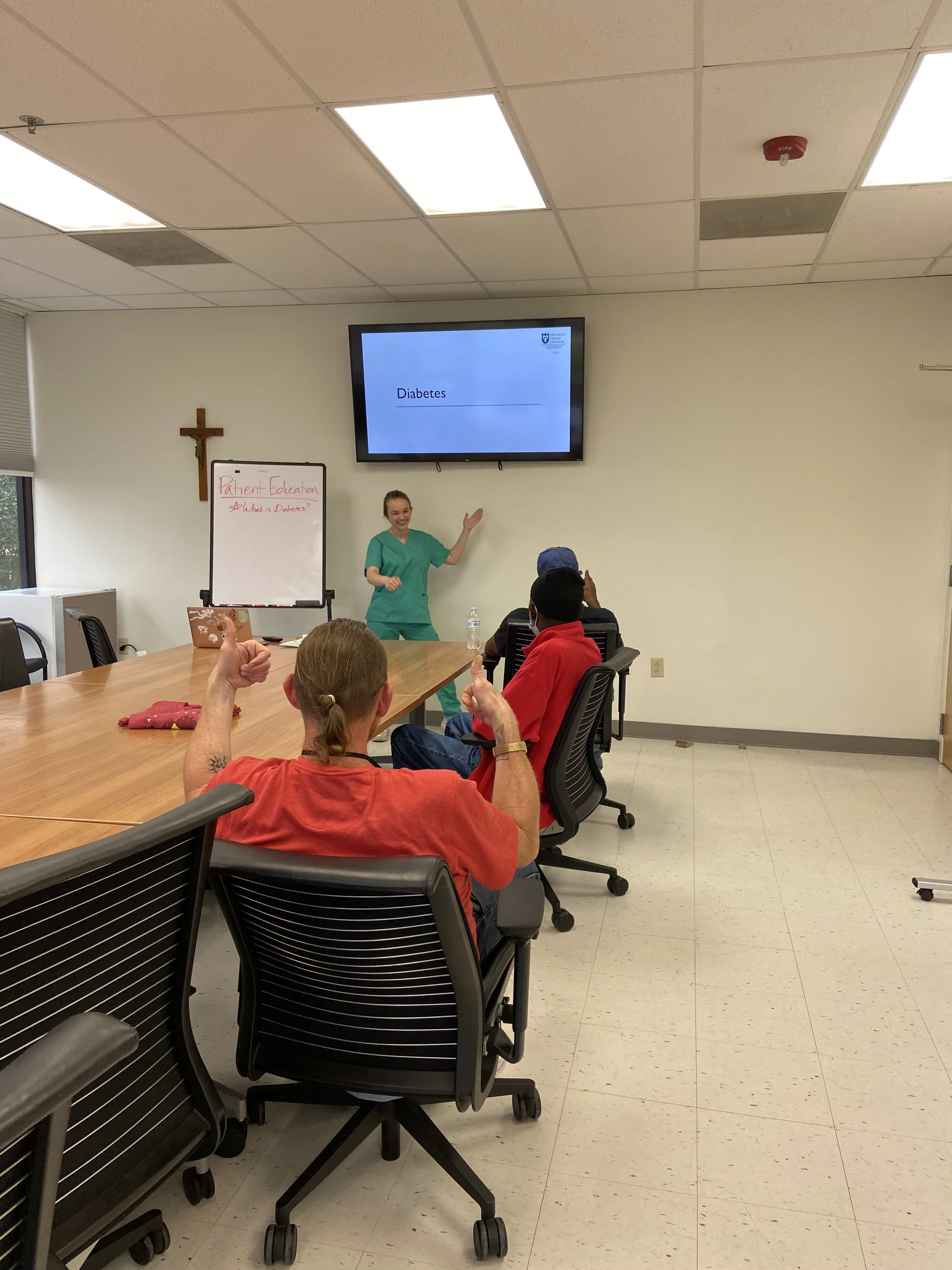 Patient Education is an opportunity for students to explain medical terminology, disease mechanisms, and answer questions patients have at various clinics around New Orleans. As clinicians knowledge of medicine grows, the more verbose they can become and, in the process, can lose sight of what patients are comprehending. Giving presentations allows for medical students to learn to better communicate with patients and teach people complex diseases in a digestible way. Patient health education offers knowledge as a tool to recognize concerning symptoms and implement preventative personal care for populations in the city who may not have as much understanding of medicine.